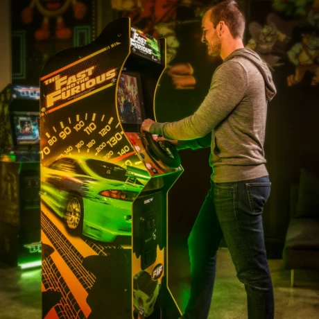 Tauchen Sie ein in die Welt von Hochgeschwindigkeit, Adrenalin und packenden Straßenrennen mit dem The Fast & The Furious Arcade-Spiel. Dieser originale Arcade-Spielautomat bringt das legendäre Rennspiel direkt auf Ihre Veranstaltung und sorgt für echtes Spielhallen-Feeling wie in der goldenen Ära der Videospiele.